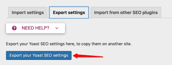 In Yoast SEO, you can export the entire settings and use them with other plugins or sites.